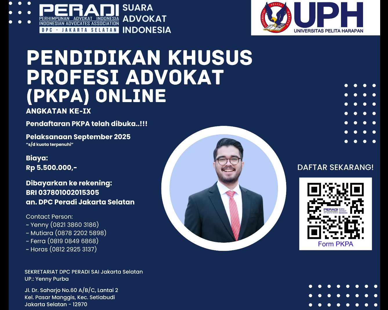 Pendidikan Khusus Profesi Advokat (PKPA) Online - DPC Jakarta Selatan Angkatan ke IX – Tahun 2025