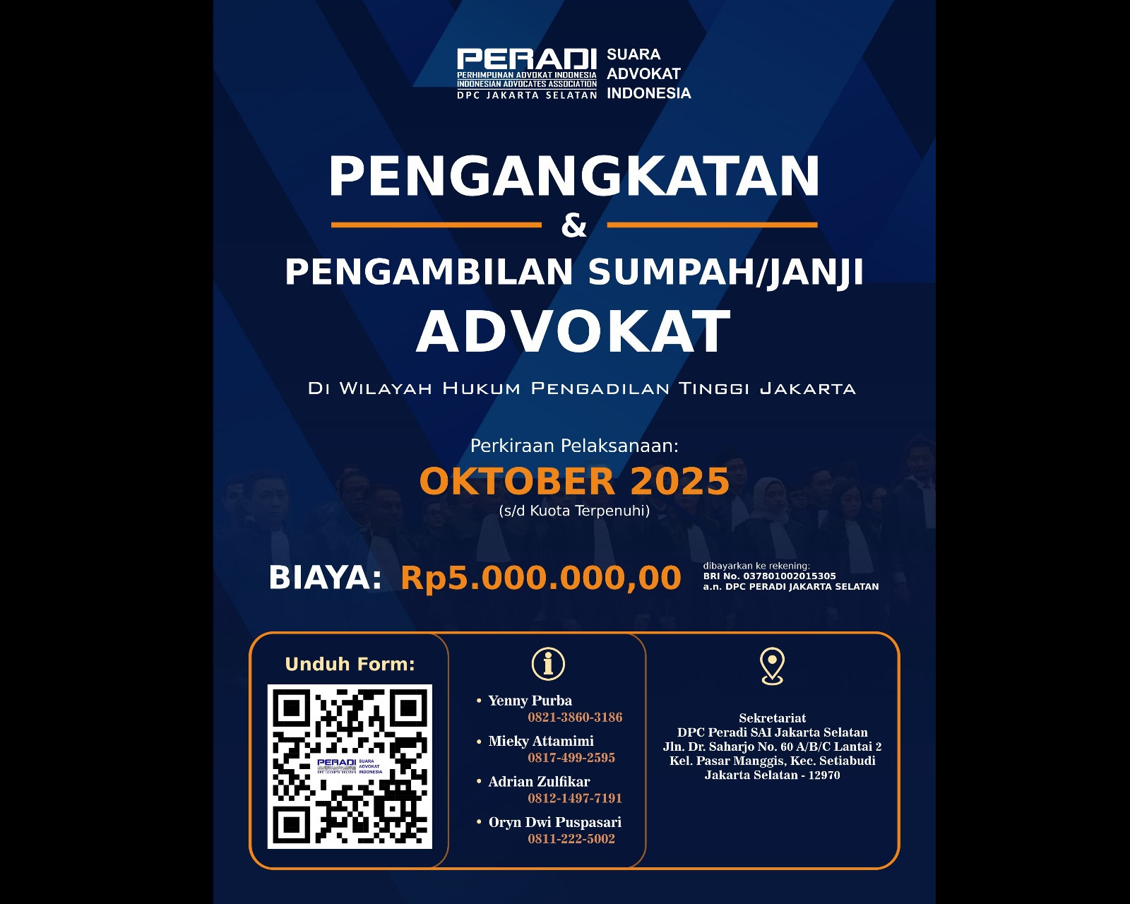 Pengangkatan & Pengambilan Sumpah/Janji Advokat di Wilayah Pengadilan Tinggi Jakarta – DPC PERADI SAI Jakarta Selatan
