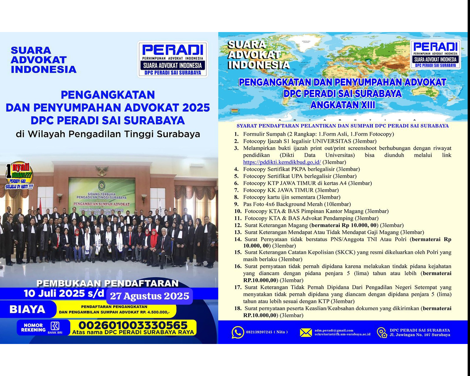 PERADI - 15 Aug 2025PERADI SAI Surabaya Raya telah membuka pendaftaran: