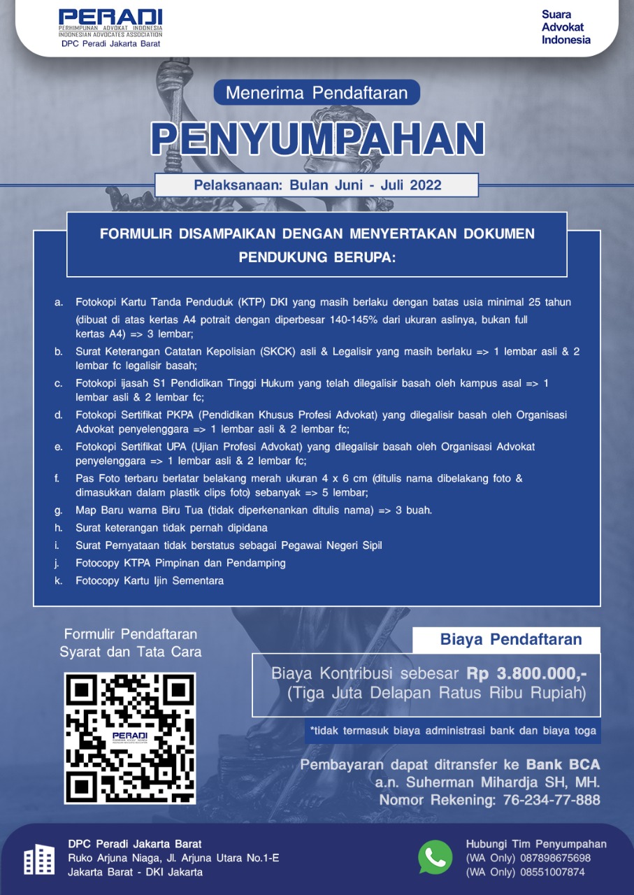 PERADI - 11 Jun 2022Penyumpahan (Pelaksanaan : Bulan Juni - Juli 2022)