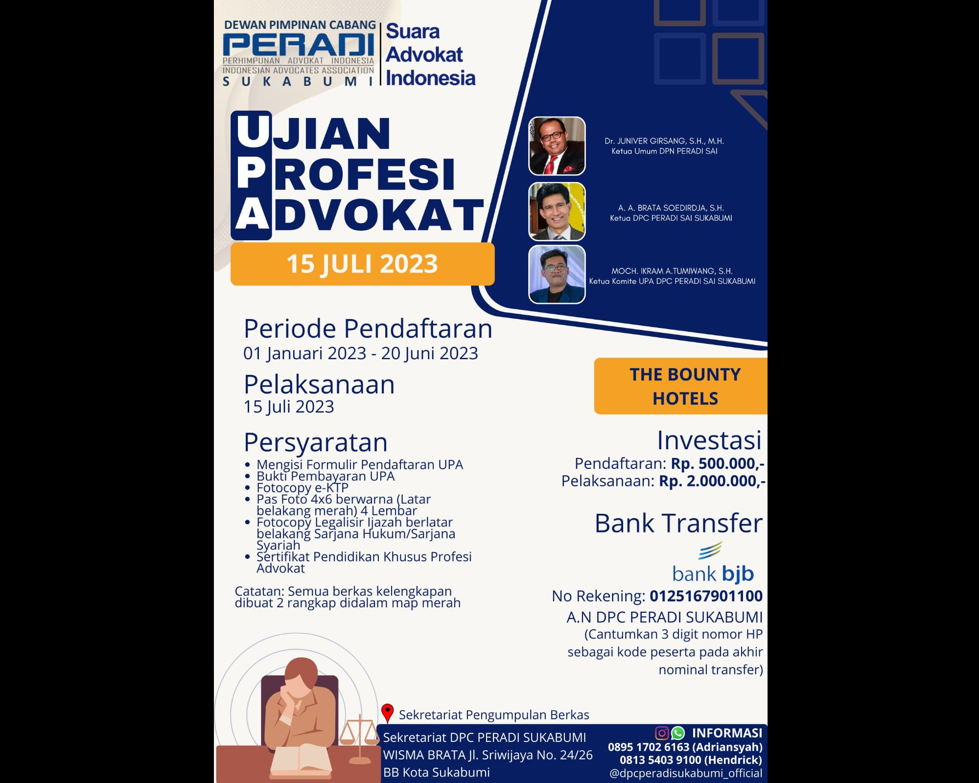 PERADI - 11 May 2023Ujian Profesi Advokat (UPA) DPC Sukabumi Tahun 2023